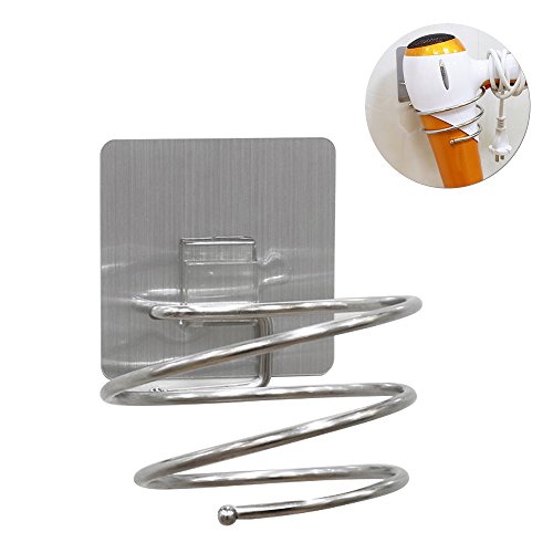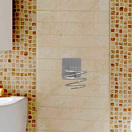 Jian Ya Na Hair Dryer Holder Blow Dryer Organizer Adhesive Wall Mounted Nail Free No Drilling Portable Stainless Steel Spiral Hair Blow Dryer Stand Flat Holder for Bathroom