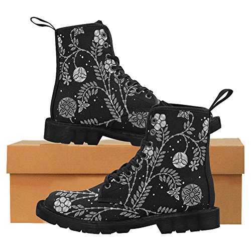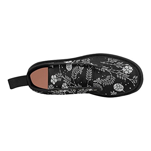 (InterestPrint)/Women's/Athletic Outdoor/DIRECT FROM USA/InterestPrint Fashion Shoes Black and White Flower Print Lace Up Boots For Women Black Sole