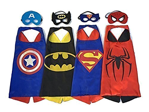 -. Binding : Toy -. Brand : FIGMOON -. Color : Blue -. Department : Boys -. EAN : 0755429126243 -. Feature : Batman, Iron Man, Spirderman, Superman, Captain America, Green Lantern, Flash, Wonder Woman etc.All the Superhero & Princess Cape and Mask Can Find Out In Our Store. / Measures approximately 27". One size, suitable for children 3-10. / Felt Masks - Comfortable for Hours of Pretend!Velcro close at neck, double layered satin material / Great Birthday Present, Holiday Gift, or Super Hero Party Outfits.Childs Costume for Halloween, Costume & Birthday Party, Play Time Dress Up. / 4 Free Gift ( The one value of $7.96 3D Fallout Key Chain) Suit For All The Fallout 4 Fans.Maybe your children need a Fallout 4 Gift too. -. Genre : Role Playing -. IsAdultProduct : 0 -. MPN : LYSB01B4KIIM6-TOYS -. PackageQuantity : 1 -. PartNumber : LYSB01B4KIIM6-TOYS -. ProductGroup : Apparel -. ProductTypeName : TOYS_AND_GAMES -. Size : Free Size -. Title : Superhero Capes and Masks 4 set Children Party Dress up Costumes -. UPC : 755429126243