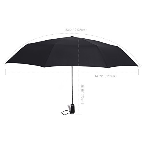 -. Binding : Misc. -. Brand : Rainbrace -. EAN : 6000006116341 -. Feature : RAINPROOF&WINDPROOF: Made from sturdy metal frame and shaft and quality waterproof Pongee solid fabric with 8 extra strong fiberglass ribs, the umbrella is highly durable and strong enough for the heavy wind and rain. / SUPER BIG: It opens 44.09"/112cm in diameter,53.94"/137cm in arc and 28.35"/72cm in length.This super-big design will allow you to protect you and your family (at least two people) well just under this umbrella for the rain or wind. / ADVANCED AUTOMATIC: Automatically open and close with at a press of a button. / COMFORTABLE RUBBER HANDLE: Designed to give a firm non-slip grip for those windy rainy days. It will fit your palm perfectly. -. IsAutographed : 0 -. IsMemorabilia : 0 -. Label : Rainbrace -. Manufacturer : Rainbrace -. MPN : 14 -. PackageQuantity : 1 -. PartNumber : 14 -. ProductGroup : Sports -. ProductTypeName : SPORTING_GOODS -. Publisher : Rainbrace -. Studio : Rainbrace -. Title : Rainbrace Big-Size Umbrella 3-fold Automatic Super Windproof Rain Resistant 54-inch with Rubber Handle(Black)