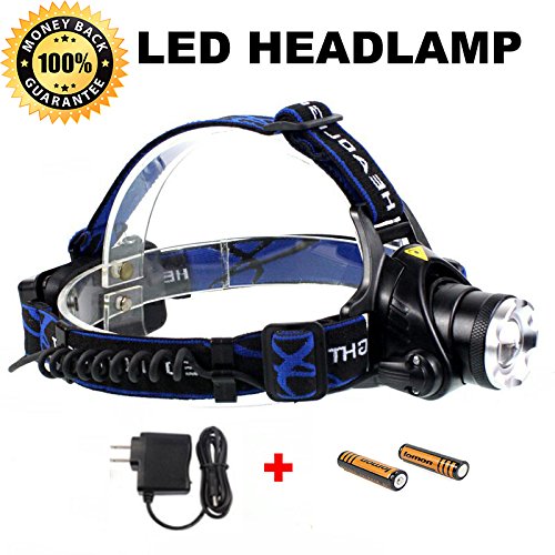 LIMITED DISCOUNT FreshLifePlus LED Headlamp - Rechargeable Batteries and AC Charger Included - 200-Meter Spotlight, Waterproof, Lightweight & Comfortable