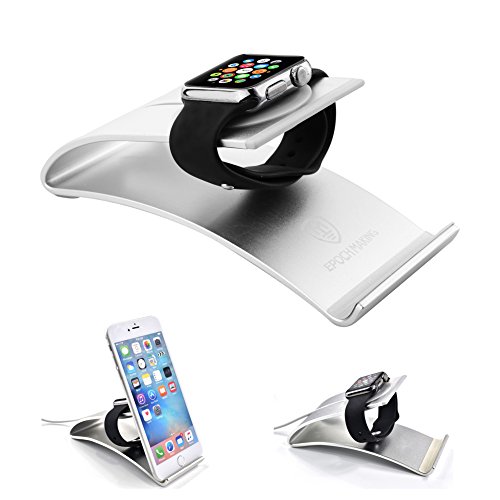 -. Title : Apple Watch & iPhone Stand, Aluminium Desk Stand Cradle with cable tidy slots For All Apple Watch,iPhone,iPad(SILVER)