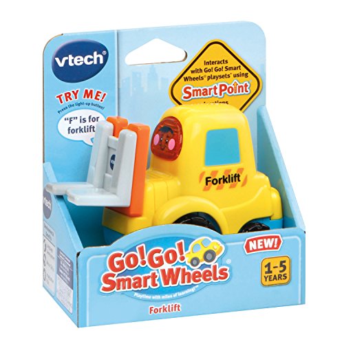 -. Binding : Toy -. Brand : VTech -. EAN : 3417761878002 -. Feature : Place Finn the Forklift on Smart Point locations and he will respond with different phrases and more on Go! Go! Smart Wheels and Go! Go! Smart Animals playsets (each sold separately) / Press the toy forklift's light-up button to hear three sing-along songs and learn the letter F and his vehicle name / Push the forklift to hear fun sounds and six melodies / Each Go! Go! Smart Wheels vehicle is unique; collect them all to experience their friendly personalities (each sold separately) / Requires 2 AAA batteries (batteries included for demo purposes only; new batteries recommended for regular use); intended for ages 1 to 5 years -. Label : V Tech -. Manufacturer : V Tech -. Model : 80-187800 -. MPN : 80-187800 -. PackageQuantity : 1 -. PartNumber : 80-187800 -. ProductGroup : Toy -. ProductTypeName : TOYS_AND_GAMES -. Publisher : V Tech -. Studio : V Tech -. Title : VTech Go! Go! Smart Wheels Forklift Vehicle -. Warranty : 90 day warranty against manufacturer defects