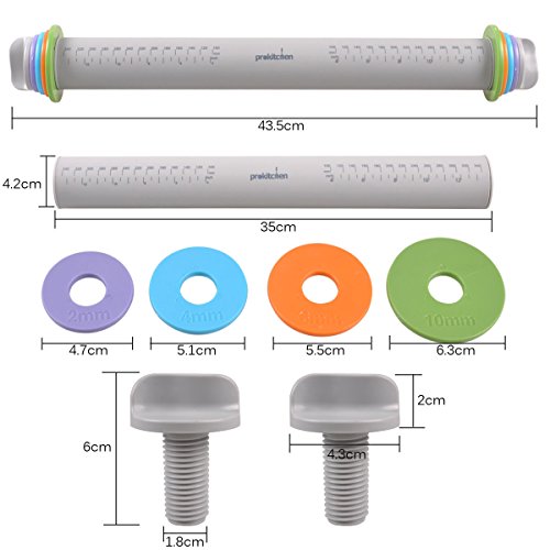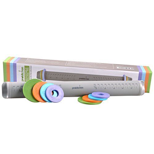 Adjustable Rolling Pin Pins with Removable Thickness Rings Guides for Baking Pizza Pie Cookie Pastry Non Stick Silicone French Dough Roller, Multicolored by Prokitchen