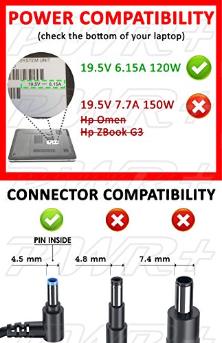 -. Feature : !!! CHECK CONNECTOR PHOTO !!! / POWER SPECS : Output Max: 19.5V 6.15A 120W (90W, 65W compatible) / Input Volt Range: 110-240V / Original HP Charger Laptop AC Adapter Power Cord Replacement by PWR+ / FEATURES: Say Goodbye to Charging with Extension Cords and Sitting on the Floor near Outlets. Only Pwr+ Chargers Have Total Cord Length Extended to 12 Ft and it is Free of Charge ($6.90 value) / ABOUT PWR+: Headquartered in Woodinville WA, Powering Millions of Laptops, Tablets and Electronic Gadgets and a go-to brand for premium replacement chargers and accessories since 2007. Pwr+ chargers manufactured with the highest quality materials and include multiple smart features safeguarding against IV - incorrect voltage, SC - short circuit, IO - internal overheating. CE/FCC/RoHS certified. / COMPATIBILITY: HP Envy Pavilion Touchsmart Sleekbook 15 15t 17 M6 M7 / MONEY BACK GUARANTEE - We are USA based Company that Wants your Repeat Business so, if You Do Not Like our Product or Don't Want It For Any Reason, We Will Happily Accept The Return and Give You Your Money Back. No Questions Asked. 30 Days Money Back Guarantee - 24 Months - Exchange - Phone Service is Available (Hint: Always Check Sellers Location Info to Guarantee Warranty Claims after 30 Days)