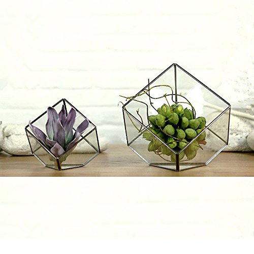 Noah Decoration Cube Succulent Plant Glass Terrarium/ Decorative Votive Candle , Tea Light Holder Black Small