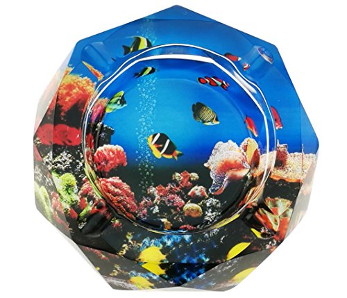 -. Title : Beautiful Colorful Pattern Transparent Octangle Shape Diameter 3.9" Cigar Cigarette Crystal Glass Ashtrays With 4 grooves Home Office Tabletop Desk Decoration Father's Day Gift (Ocean World)