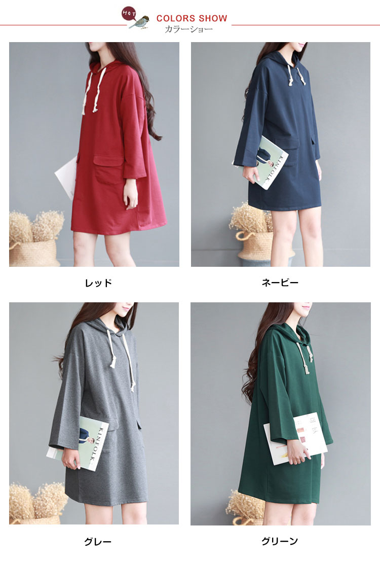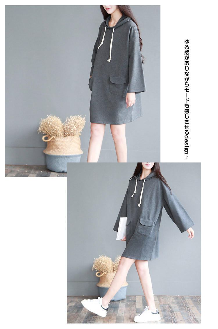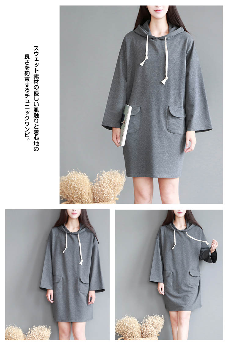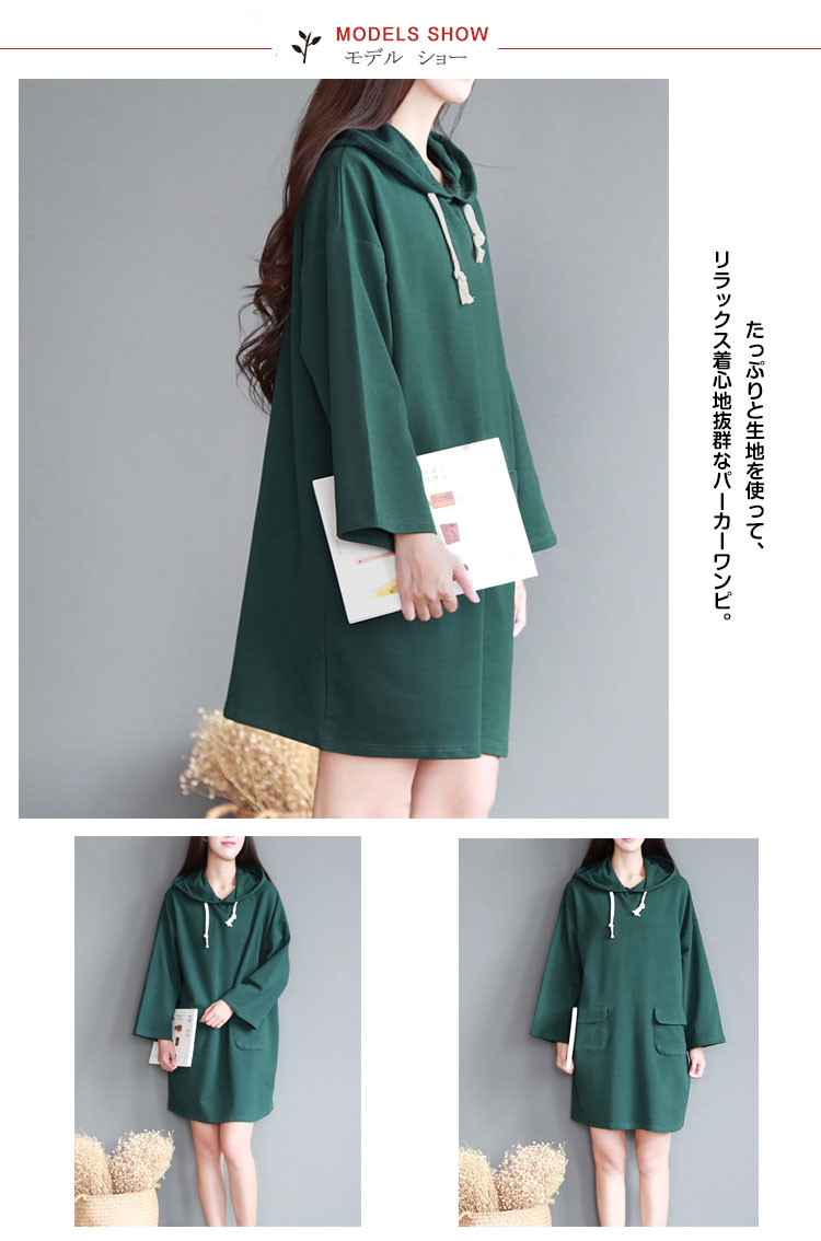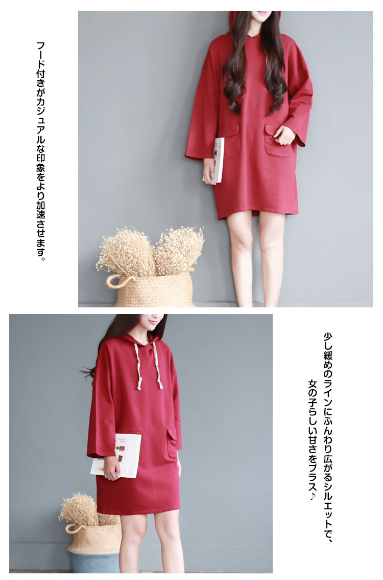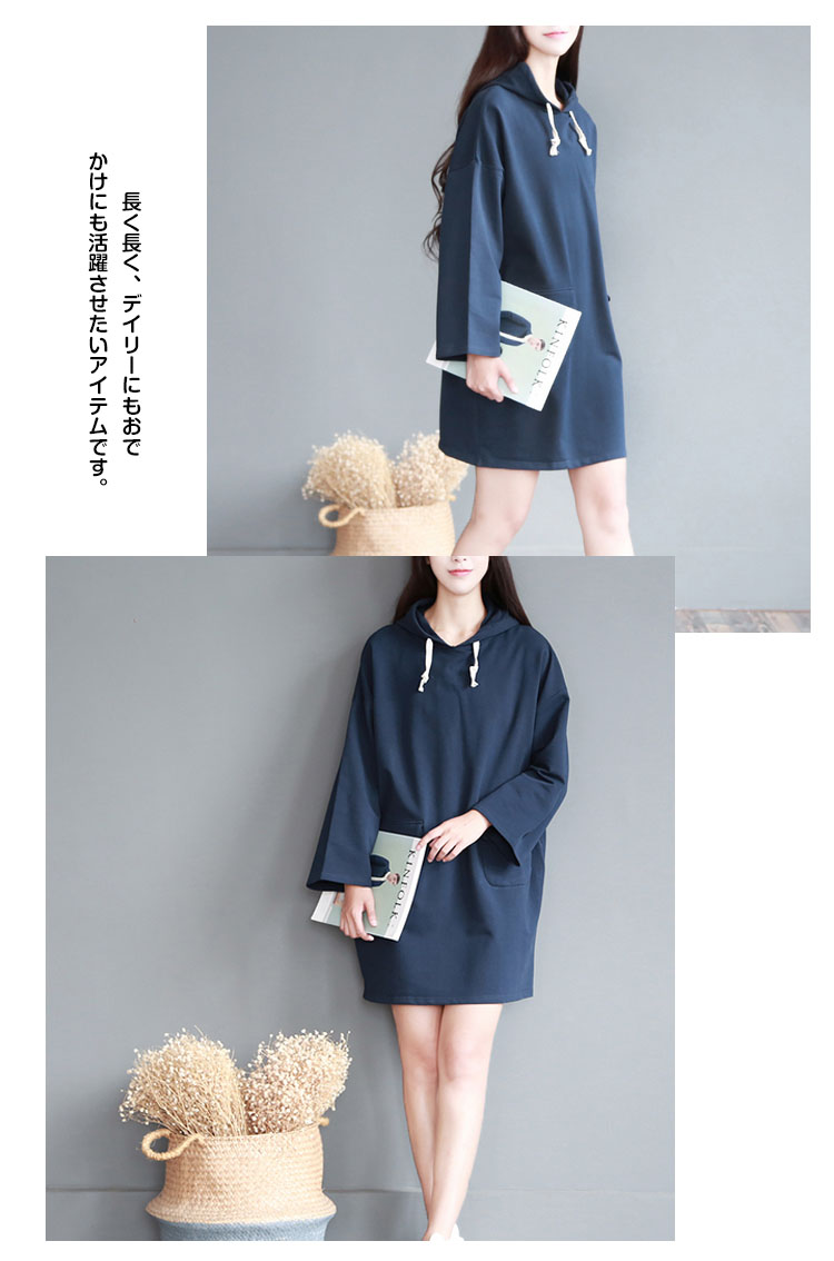 | たっぷりと生地を使って、リラックス着心地抜群なパーカーワンピ。スウェット素材の優しい肌触りと着心地の良さを約束するチュニックワンピ。ゆる感がありながらモードも感じさせるdesign♪フード付きがカジュアルな印象をより加速させます。少し緩めのラインにふんわり広がるシルエットで、女の子らしい甘さをプラス♪長く長く、デイリーにもおでかけにも活躍させたいアイテムです。 | |