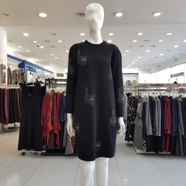 고양이패턴 라운드 롱니트 원피스-CA7W1-WSO050-450