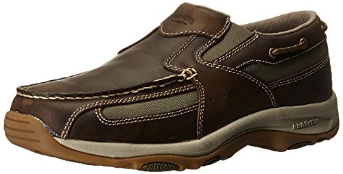 Studio : Irish Setter Publisher : Irish Setter Binding : Apparel Product Description The fish don't stand a chance when you're wearing the Irish Setter Lakeside Slip-On loafer. Equipped with a wraparound lace for nautical flair, this men's boat shoe has a durable full grain leather upper with abrasion-resistant nylon underlays and elastic goring for easy on/off. A padded collar enhances comfort atop the removable EVA insole; for further customization, replace the insole with a personal orthotic. The Irish Setter Lakeside Slip-On boat moccasin is finished with a razor-siped rubber pod outsole for superior traction over wet surfaces. 0