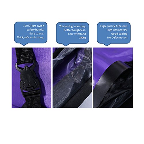 Warm tips:(Please read the following text before use ): ☆ If it is windy outside, congratulations to you, you can be fast inflatable. ☆ It is more difficult to set up without any wind, you may need to run 10 meters ☆ 80% air is enough, the sealing strip roll at least 3 times or will be air leakage! ☆ When you have experience for it, you can set up air lazy bag in 10 seconds. ☆ Avoid sharp objects.