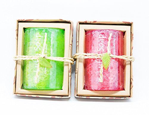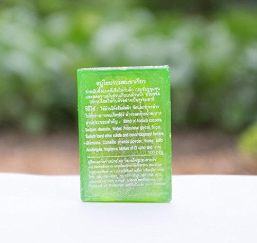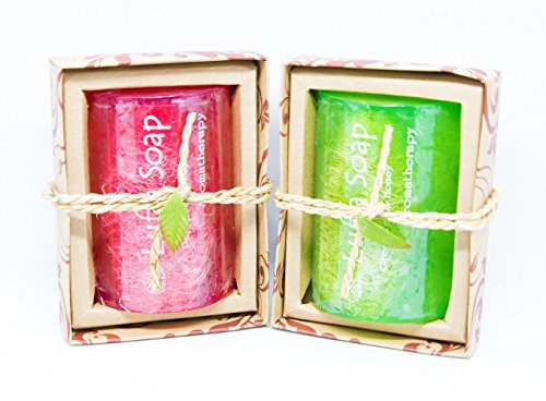 SET SAIBUA HANDMADE SOAP LUFFA SOAP AROMA GREEN TEA PAPAYA & HONEY SCRUB HERBAL NATURAL 100G.