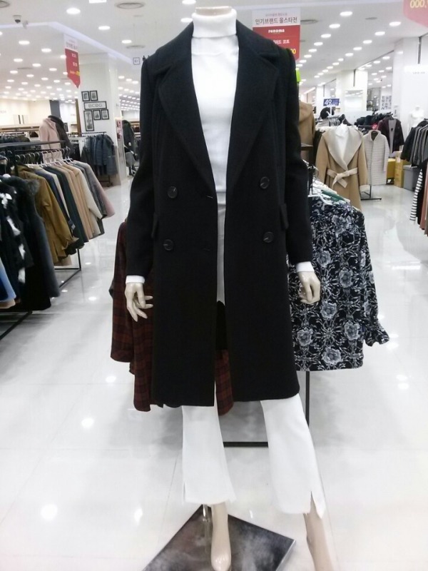 클래식한 느낌의 더블 모직코트^^메인 플랩포켓과 와이드한 테일러드 라펠 디자인이 돋보이는 클래식 코트입니다