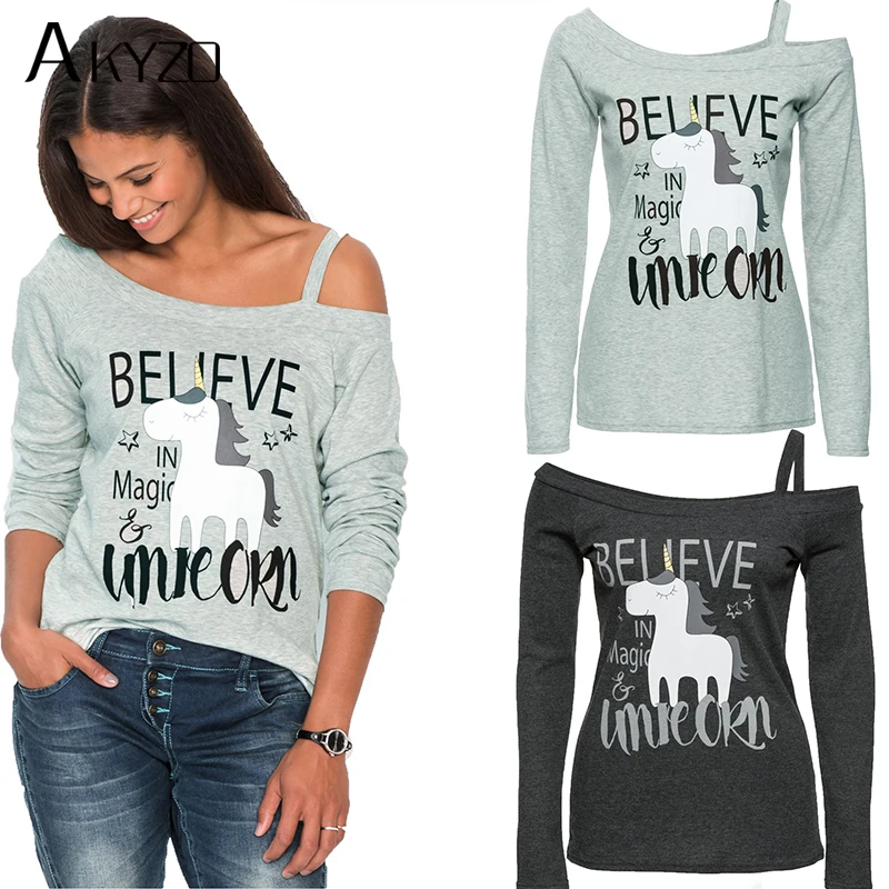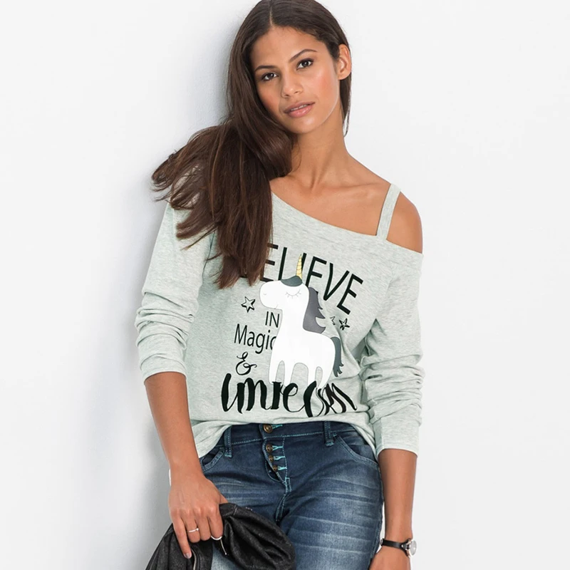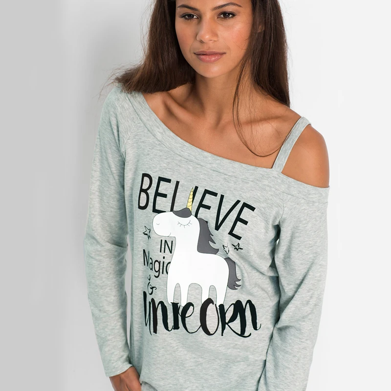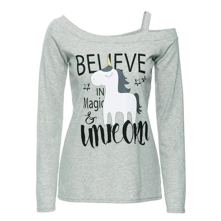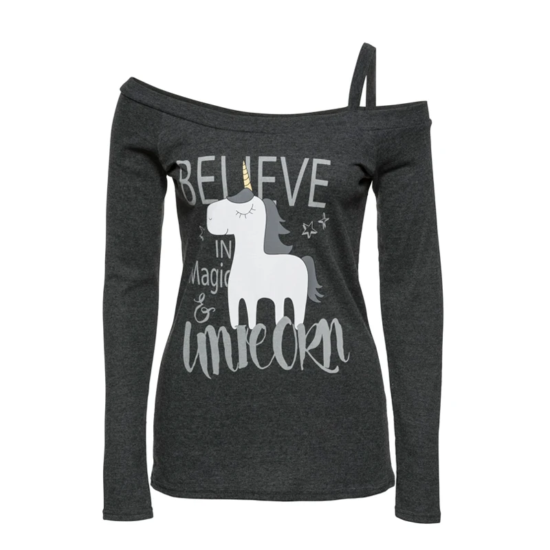 Creative Design Unicorn Print T-shirt:Women's Long Sleeve Casual Tops