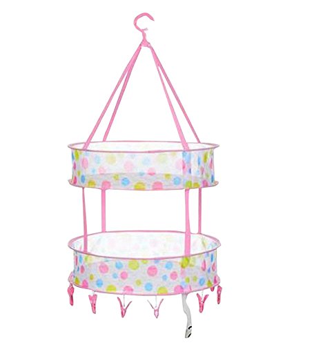 -. Feature : Size: unfold size: diameter 45 CM. / Durable plastic hooks will work on standard shower rods. / Space saving stackable dryer. / Must have item for hanging clothes, socks. / Combined hanging dryer with clothes clips.