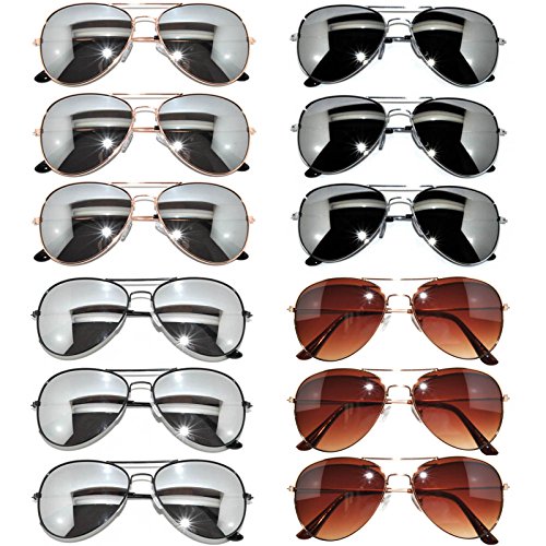 12 Pairs Classic Aviator Sunglasses Metal Gold, Silver, Black Frame Colored Mirror Lens. Sunglasses listed by Online-Welcome. 100% guarantee picture and glasses match.OWL ®.