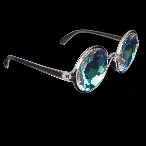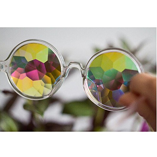 STAND OUT IN A CROWD: Rainbow, thick, mirrored, multi-faceted, glass crystal lenses are the best way to turn heads when at any dance party, concert, music festival, or firework show!
