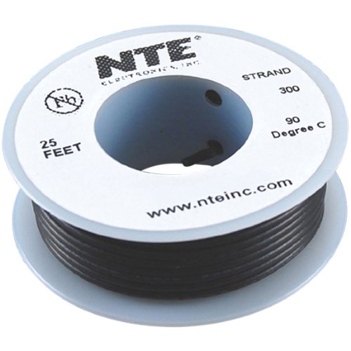 NTE Electronics WH26-00-25 Hook Up Wire, Stranded, Type 26 Gauge, 25' Length, Black