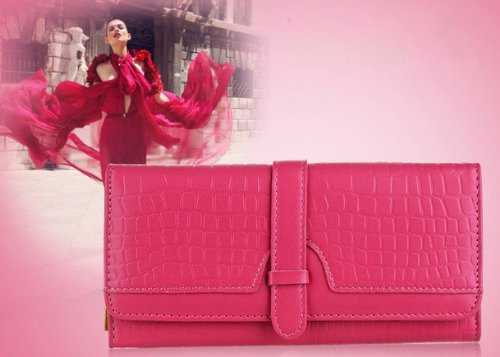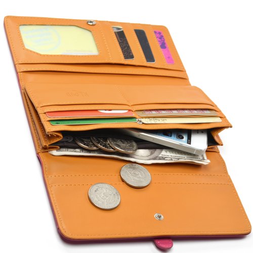 Title : KLOUD City® Hot Pink synthetic leather drawstring style double button women wallet