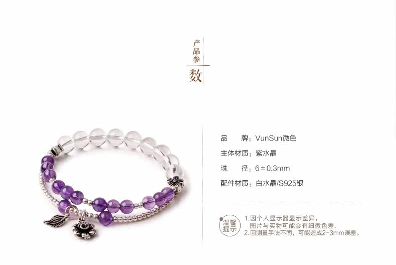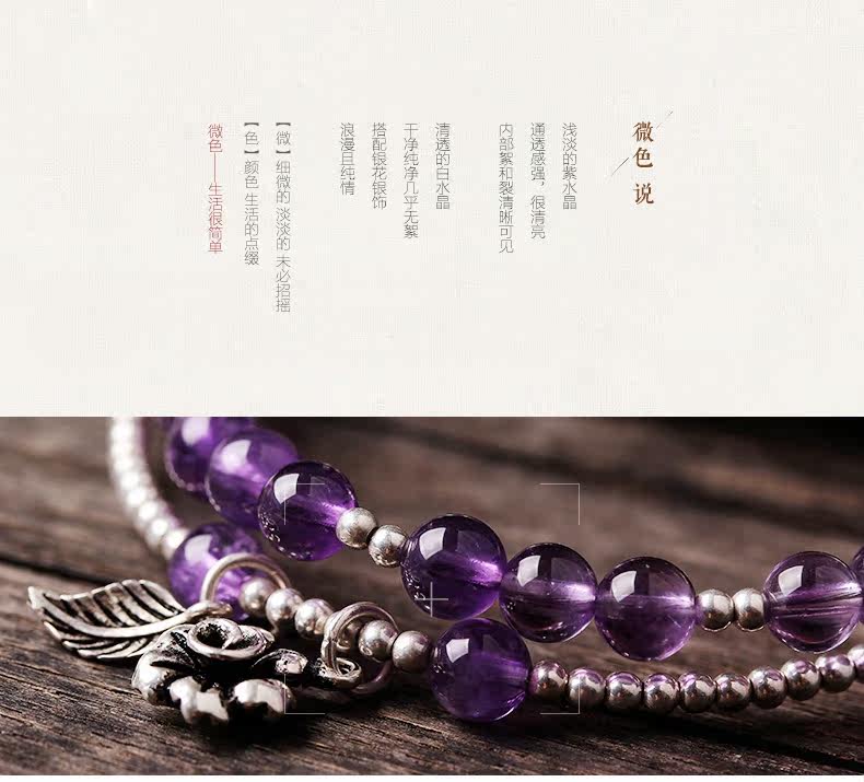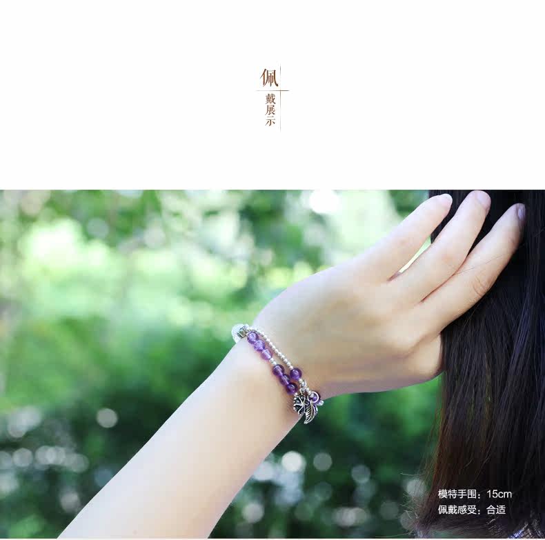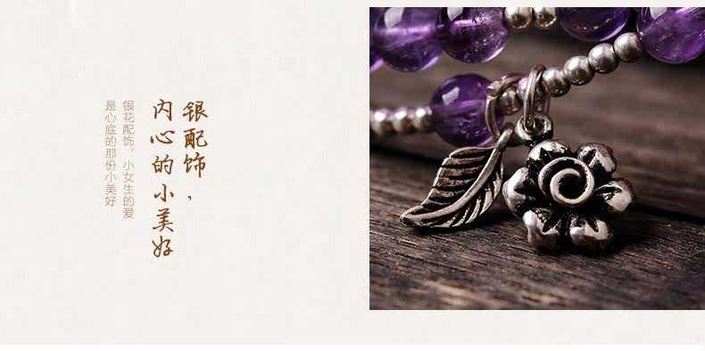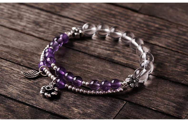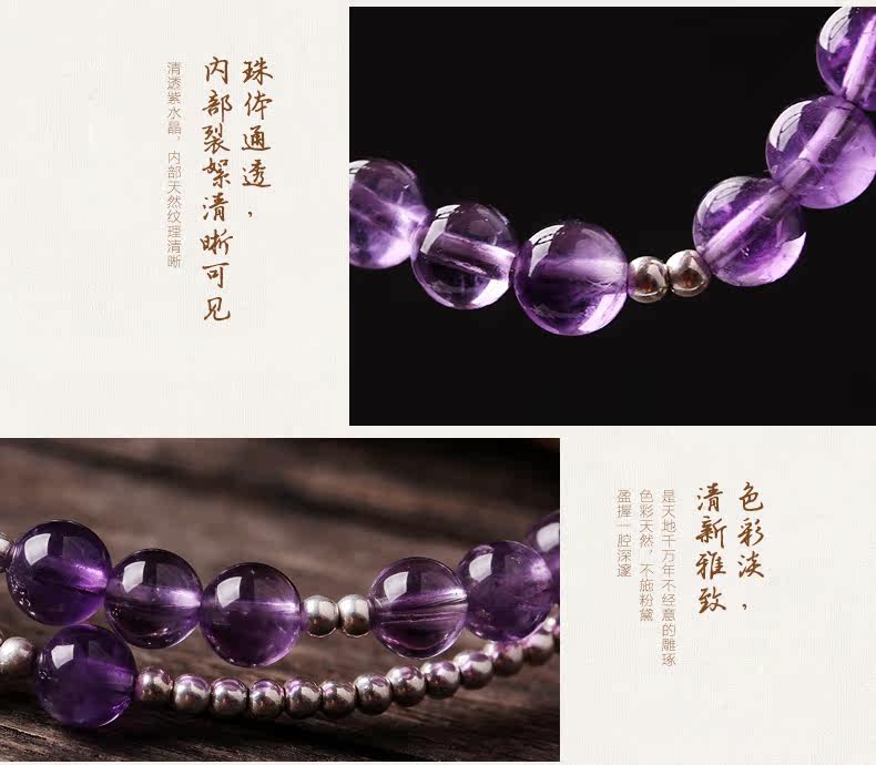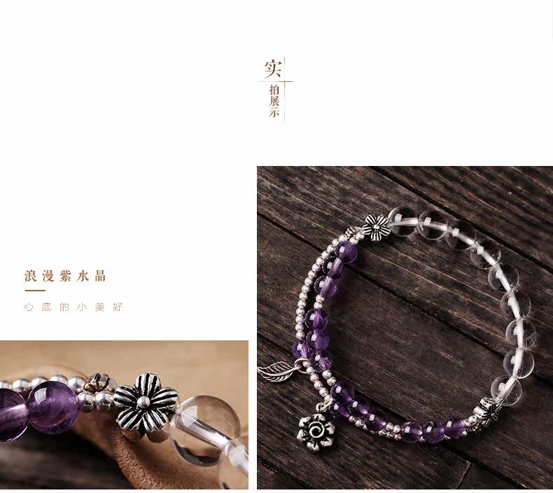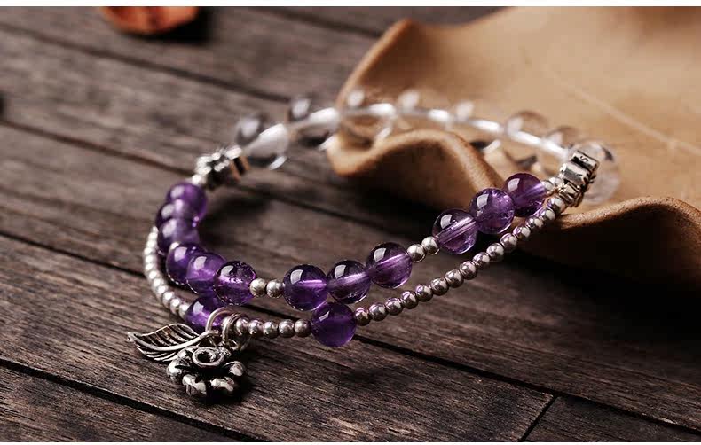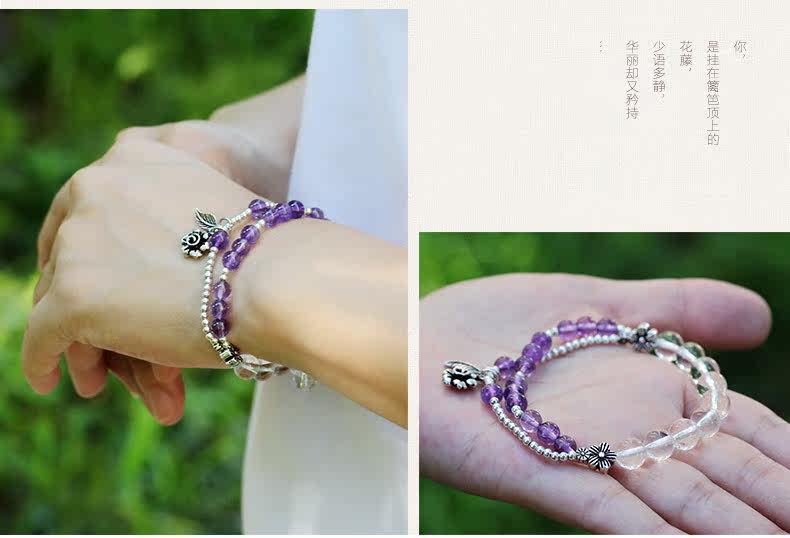 天然紫水晶手链女款多圈紫色 白水晶手串925银文艺清新饰品