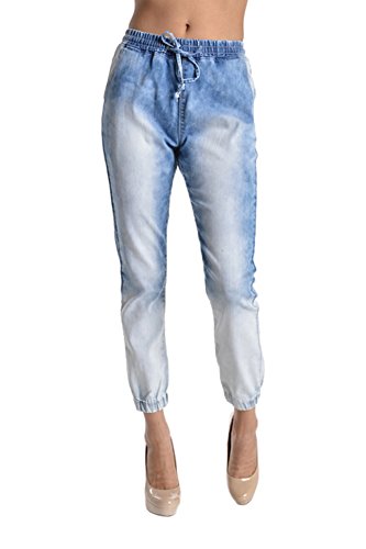 -. Title : American Bazi Women's Denim Jogger Pants RJJ319 - LT.BLUE