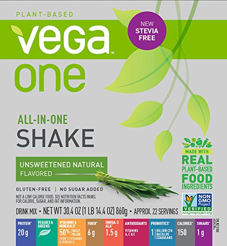 ReleaseDate : 2017-07-31 Studio : Vega - HPC Publisher : Vega - HPC Binding : Health and Beauty Product Description We put the best in so you get the best out. Made from whole food, non-gmo ingredients, vega one all-in-one nutritional shake gives you everything you need-all in one delicious scoop. 20 grams of premium plant-based protein, 6 servings of greens, and 50% daily value of food-based vitamins and minerals made from fruits and vegetables, plus fiber, omega-3s, antioxidants and probiotics in each serving of vega one gives you the nutritional confidence to enjoy your full life-no matter how much you pack in. Vega one is non-gmo project verified, vegan certified, low-glycemic, gluten-free and made without dairy or soy ingredients. Enjoy vega one in French vanilla, chocolate, berry, vanilla chai, coconut almond, or natural flavors. 0