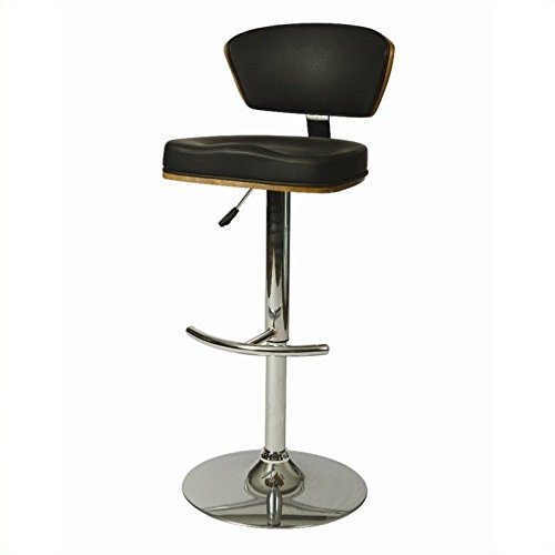 -. Feature : Dimensions: 17.75W x 19.25D x 43.75H in.; Seat height: adjustable / Metal post frame with faux leather upholstery / Clean lines with wood trim for style / Polished chrome metal finish / Faux leather seat and back upholstery in color options