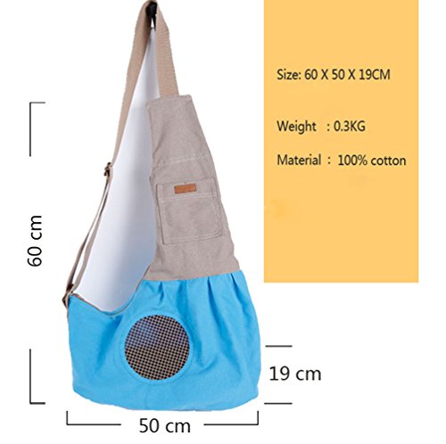 -. Feature : HIGH QUALITY MATERIAL:100% cotton,made of high quality canvas fabric and fine stitching, durable,strong and comfortable.Make your dogs love to stay in the bag. / COMFORTABLE SIZE:Size: 23.6"* 19.7"* 7.5"(L* W* H),suitable for SMALL DOGS AND CATS UP TO 9 POUNDS IN WEIGHT! / WITH FIXING HOOK:Keep your dog stay in the bag,prevents your pet from falling out accidentally. / UNIQUE DESIGN:With air mesh,make your pets feel breathable and comfortable.Extra pocket can be loaded keys, ID card and other small things,very convenient and Practical. / ENJOY YOUR TIME:Adjustable strap helps you choose the right length, you won't feel tired after carrying a whole day, not even hurt your shoulder.