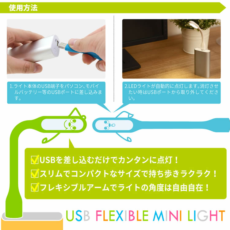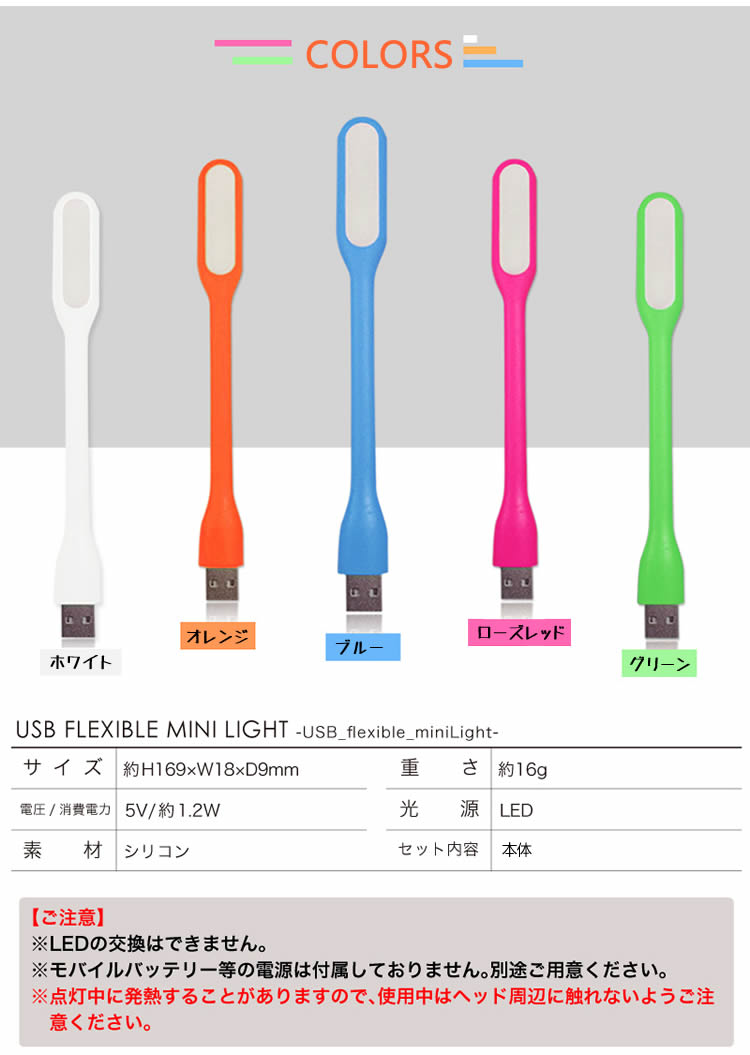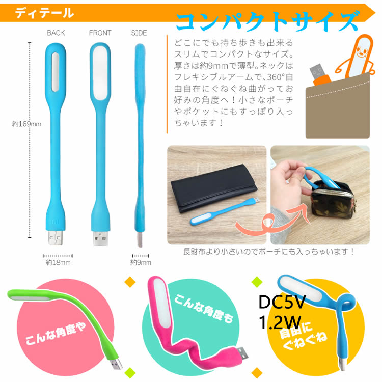 USB充電器やモバイルバッテリーと併用すれば様々な場所で使用できるので使う場所を選びません。