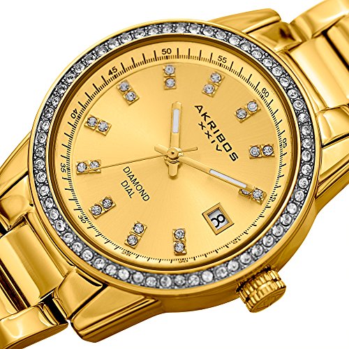 Akribos XXIV Women's Genuine Diamond Hour Markers on a Gold Sunburst Dial and Crystal Accented ...
