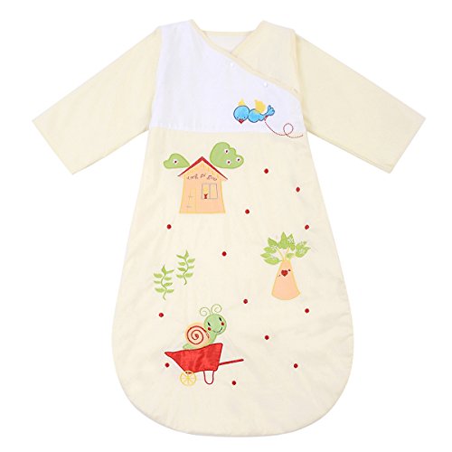 Feature : This sleeping bag comes in three sizes--Size 90cm: suitable height is 60-90cm/23.62-35.43inch; Size 105cm: suitable height is 75-105cm/29.52-41.33inch; Size 120cm: suitable height is 90-140cm/35.43-55.11inch. / This sleeping bag has two different thickness: the quilted cotton sleepbag is fit for use in spring and autumn(good when the room temperatures around 20 degrees); the thick cotton sleepbag is fit for use in fall and winter(good when the room temperatures / Our baby sleeping bag is an 100% cotton sleeping bag with removable arms and zipper on the bottom, which is more convenient for baby and you. / Clever shoulder make placing a sleeping or standing baby in the sleep nest a cinch / When you sleep, your baby sleep, this baby sleeping bag can give your baby a warm environment in which they can sleep better and won't get sick or catch cold so easily.