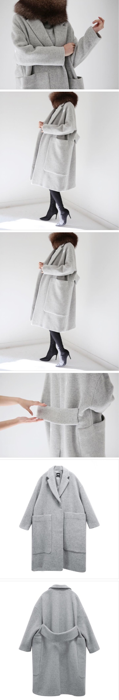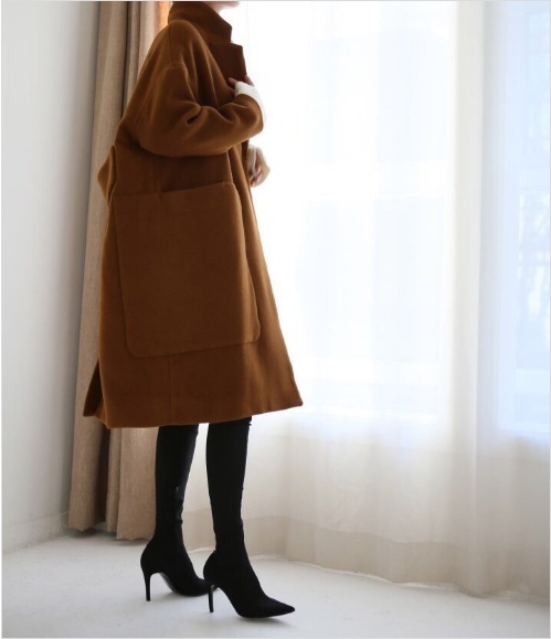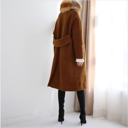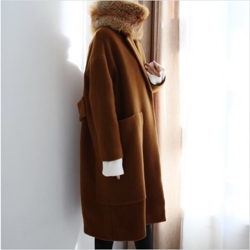Women`s Wool Coat Drop Shoulder Coat Long Coat