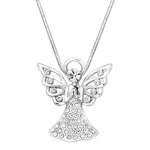 -. Title : Angel Pendant Necklace Rhinestone Crystal High Polished Rhodium J1466
