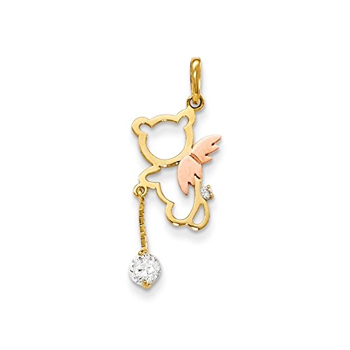 -. Title : 14k Yellow and Rose Gold CZ Children's Angel Bear Pendant