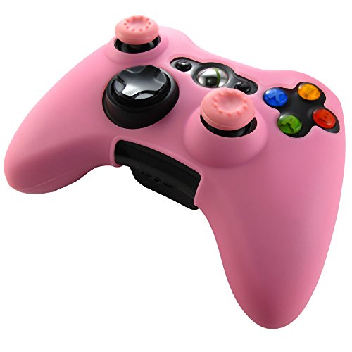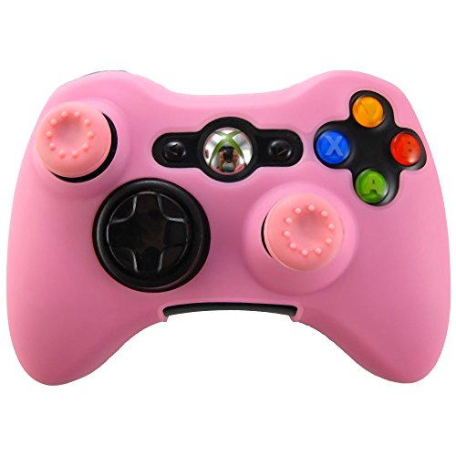 Pandaren® Silikon hülle skin für Xbox 360 controller (rosa) x 1 + thumb grip aufsätze x 2