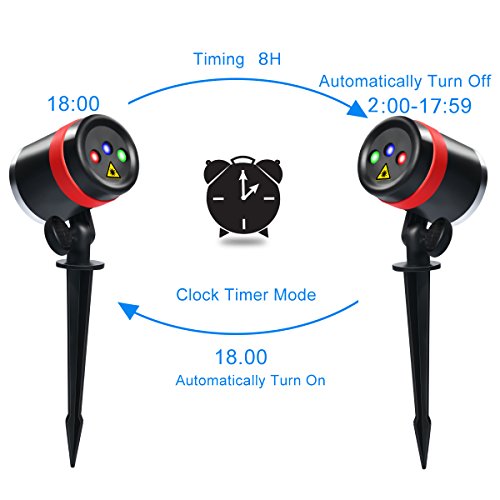 -. Feature : 1,Intelligent Design: Smart RF controller, color(s) selectable, speed controllable,flash mode.Set a timing mode using the remote control and the light will turn on the same time every day or night and turn off again either 2,4,8 hours later.Class II laser product, UL, RoHS, CE, FCC, FDA Certificated, Less than 1.0mW power output. / 2,Cover Range: ALPULON outdoor laser Light covers more than 4000 square feet and projects up to 65FT away.Allows it to display thousands of Green Red and Blue stars combination,or separated Red/Green/Blue stars Static or Moving. / 3,Premium Quality and Weather Resistant: Uses laser holographic technology found in theme parks to project breathtaking stars onto any surface, Weather resistant to withstand snow, rain and intense sun. Safe, Certificates of FDA, FCC, ROHS and IP65 Test Report come with this Blinking star projector laser light, blinking star laser lights shine thousands of shimmering lights onto houses, lawns, patios and more. / 4,Easy Installation:Just plug and play, no ladders needed. One of the fastest outdoor Christmas laser lights solution, ground stake for easy positioning.Uses 99% less energy than regular string lights.When the Playing in dark environment for the best result, projecting brightness will be affected by lighting.Stakes outdoors or enjoy inside with indoor base, Great for Christmas, Independence Day, Valentine's Day, Wedding decoration and so on. / 5,What You Get:30-Day Money Back Guarantee,12-month Warranty. If you have any questions or anything you feel unsatisfied with, please feel free to contact us by message. We sincerely hope that our products and customer service can offer you a GREAT PURCHASING EXPERIENCE on Amazon!