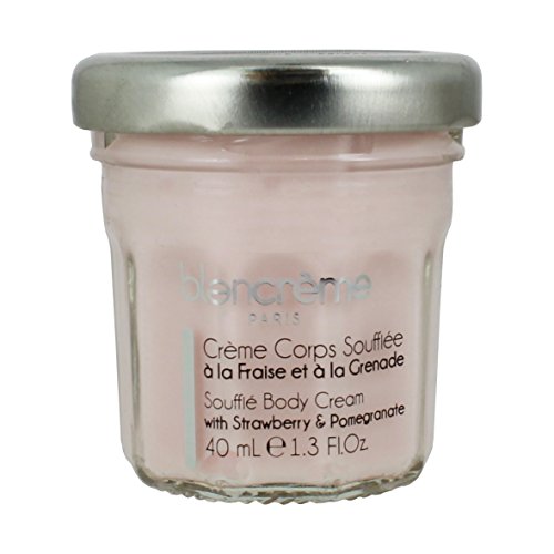 AMAZING TEXTURE & SCENT...SO NOURISHING! Hydratation Cream - Strawberry Pomegranate Souffle Body Cream 40ml / 1.33oz in Glass Jar. This unctuous Soufflé Body Cream mixes the extracts of antioxidants Pomegranate, revitalizing Strawberry and protective Blueberry. Enriched with Shea Butter, Sweet Almond and Avocado Oils, it nourishes and delicately perfumes your skin. Key Ingredients: strawberry fruit extract (vitamin C & A) antioxidant, Promeganate fruit extract (vitamin C) rejunavating, blueberry fruit extract (vitamin C & B1) protective, Shea Butter (moisturize), Sweet Almond oil (nourish) and Avocado oil (soften). Made in France. Parabens free, no testing animal.