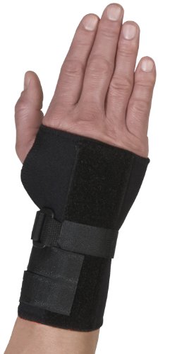 ReleaseDate : 2015-06-22 Studio : Thermoskin Publisher : Thermoskin Binding : Health and Beauty Product Description The Thermoskin Carpal Tunnel Brace with Dorsal Stay has a metal splint positioned?at 25Degree under the wrist and an?additional dorsal splint on the top side of wrist and hand.?With the metal splint positioned at 25 degrees and additional top side splint the wrist is protected from movements that can lead to Carpal Tunnel Syndrome. The adjustable velcro locking straps gives this brace a better fit. The exclusive Trioxon lining increases circulation to aid in the treatment of repetitive stress injuries (RSI) and Tendonitis. Thermoskin Thermal Supports utilize the exclusive Trioxon lining that is clinically proven to capture your natural body heat. Unlike other products, Trioxon allows your skin to ventilate and remain comfortably dry even with long-term use. Competitive products trap the perspiration resulting in discomfort, slippage, risk of infection and unpleasant odor. The Trioxon lining creates a microclimate to help the skin breathe while still providing effective heat therapy. This is the secret of Thermoskin's long-term comfort for the user. You can even wear Thermoskin for extended periods of time without the discomfort you would have with other products. How Thermoskin works: The application of prolonged heat therapy to the affected area is a simple and quick form of treatment. Heat therapy promotes healing by opening up the small blood vessels, increasing blood flow and facilitating the removal of inflammation. Heat therapy assists your body's natural healing process. The combination of this heat therapy along with the support and light compression provided by Thermoskin Thermal Supports help prevent, treat and rehabilitate soft tissue injuries. Sizing Guide: Measure the circumference around the wrist joint. X-Small 4 1/2 - 5 1/4 inches. Small 5 1/2 - 6 1/4. Medium 6 1/2 - 7 1/2. Large 7 3/4 - 8 3/4. X-Large 9 - 10. XX-Large 10 1/4 - 11 1/4. 3XL 11 1/4 - 12. 4XL 12 1/4 - 12 3/4. 0
