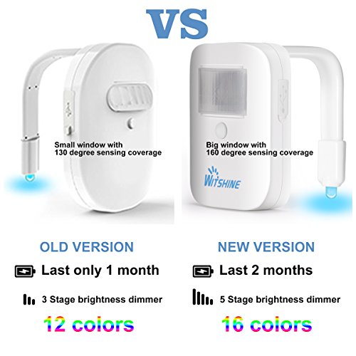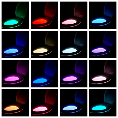 - 16 COLORS & 170 DEGREES RADIUS - This rechargeable motion sensor toilet light has 16 colors that can work on a rotation or as a solid color by using the control button. 170 degrees coverage makes it detect motion a much wider angle than most other toilet seat lights which can reach 120 degrees or lesser. Detects movements within 15 - 20 feets and turns on the light. Only activates in darkness.