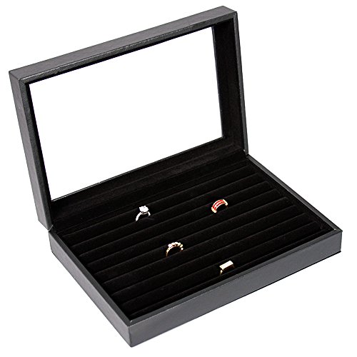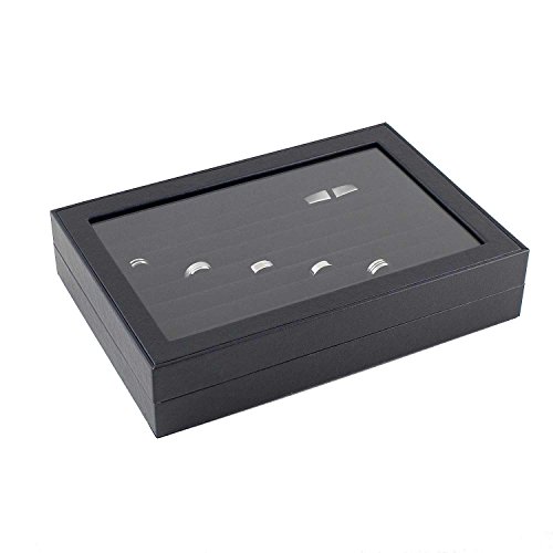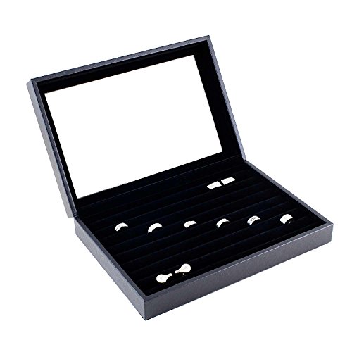 Caddy Bay Collection Black Jewelry Ring Cuff Links Case Display Storage Box with Glass Top