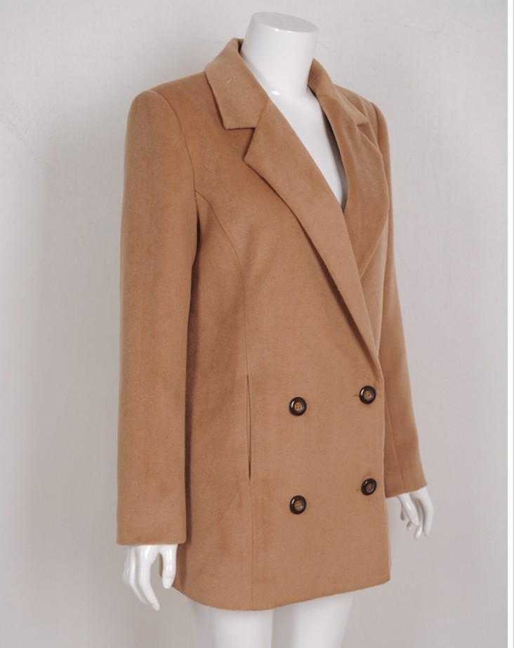 オフィス・通勤◎ ダブルブレスト スリム トレンチコート チェスターコート ブラウン