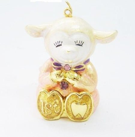 -. Feature : Welforth Fine Pewter Sheep Tooth Box - Girl / Embellished Tooth Box in the shape of a Sheep. / The box is small and measures 1.2"x 1.25"x 2"H. / Decorated with crystals. / Finely crafted and embellished Welforth quality.