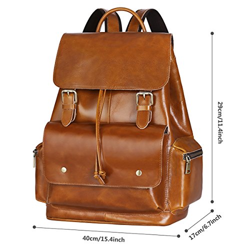 Dimensions of the leather backpack: 15.4(H)*11.4(L)*6.7(W)inch. Easy to carry 13 inch laptop, iPad, A4 Magazine, book and phone
