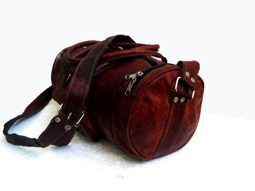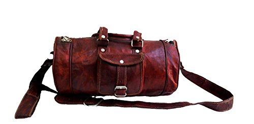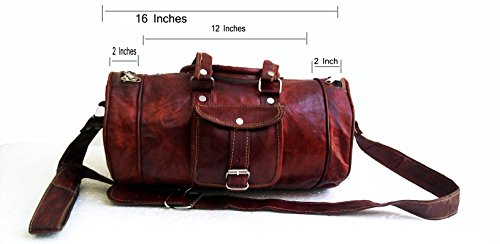 -. Binding : Apparel -. Brand : jaald -. Color : Dark Brown -. Department : unisex-adult -. EAN : 0796520510883 -. Feature : Small Genuine leather duffle bag Ideal as a gym bag or small carry on bag / This Leather duffle bag has 100% genuine leather, thick hide with no bad smell assured. / Has strong canvas inner lining, 2 Side pockets of 2 Inches & one main compartment. Dimensions of this leather bag is : 16 (L) X 9 (Diameter) inches. / 12 Inch. main compartment big enough for all need for gym, weekend trip and travel, Has handle & a 22" Shoulder drop / The hardware used for this duffle gym bag for men /women is heavy duty and will last for a long time -. IsAutographed : 0 -. IsMemorabilia : 0 -. Label : Jaald -. Manufacturer : Jaald -. PackageQuantity : 1 -. ProductGroup : Shoes -. ProductTypeName : BAG -. Publisher : Jaald -. Size : Medium -. Studio : Jaald -. Title : 16" Inch Men's Pure Leather Light Weight Small Weekender Sports Gym Duffle Bag -. UPC : 796520510883