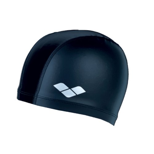 Arena Fusion Pro PU Coated Nylon Swim Cap Black with Navy stitching and Silver logo (Medium)