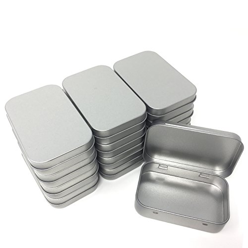 24 Pack Metal Rectangular Empty Hinged Tins Box Containers Mini Portable Box Small Storage Kit, Home Organizer, 3.75 by 2.45 by 0.8 Inch Silver