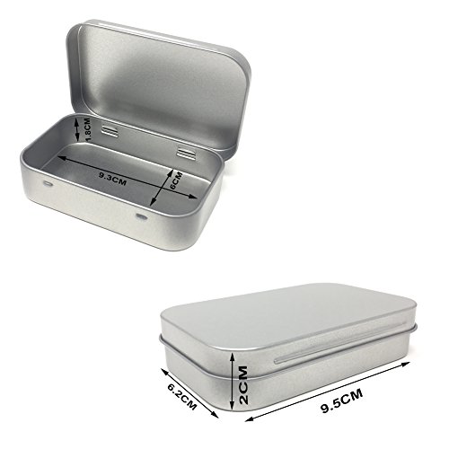 - Size: the rectangular tin size 95 x 62 x 20 mm/ 3.75 x 2.45 x 0.8 inch (L x W x H); Thickness is 0.23 mm; Good size box for secret stashes, you can use your own sense of style to decorate it