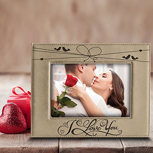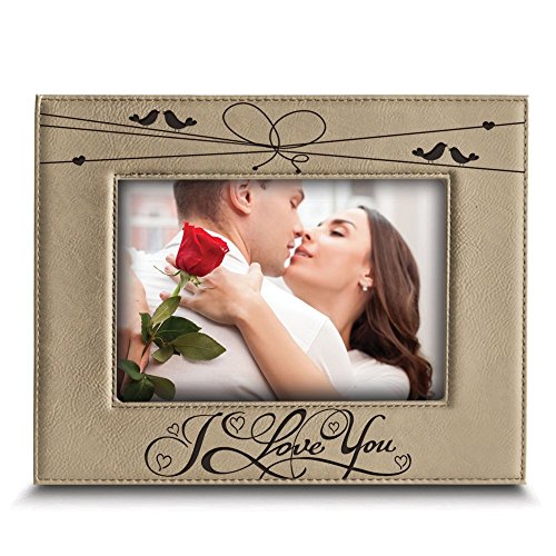 Bella Busta- I love you - Engraved Leather Picture Frame- Gift Bod Include -Valentines Day Gift- wedding gifts for the couple-Anniversary Gift (5"x 7" Horizontal)