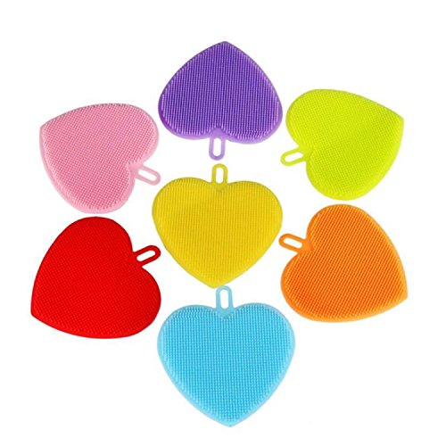 AVIRGO Food-Grade Silicone Non Stick Dishwashing Brush Random Color Set of 3 Pcs Hearts