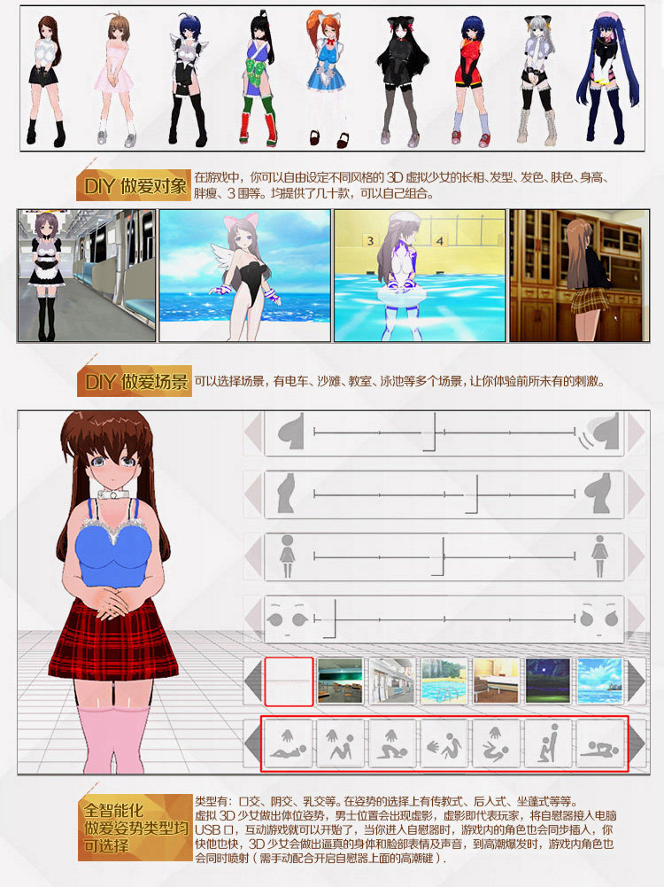 You can star in a variety of interactive 3D cybersex games on any computer with wifi connection. Zidom Virtual Reality Masturbator allows selection of your own Avatar, choice of 3D girlfriends with interactive moaning, body and facial expressions. You can also choose your favourite sex positions in numerous action packed scenarios and speed! Your penetration and thrust is conveyed and simulated by the game. To further enhance the virtual realistic cybersex experience, your orgasm is synchronised with your virtual character. Ejaculate at the same time with just a push of the button!
